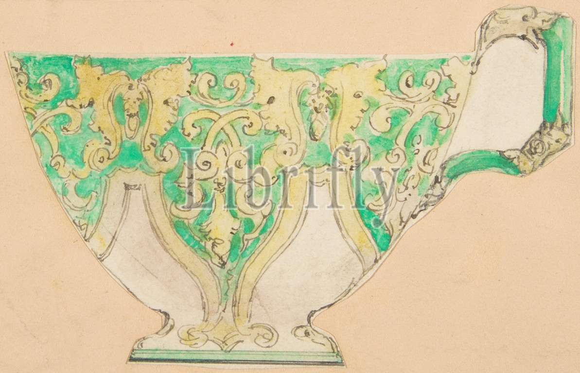 Design for a tea cup, 19th century, Pen and ink and watercolor, sheet (irregular): 2 5/8 x 4 1/16 in. (6.7 x 10.3 cm), Drawings, Anonymous, French, 19th century