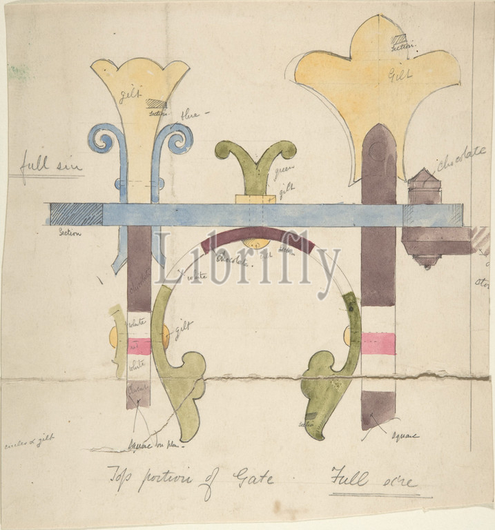 Design, Top Portion, Gate, Full-Size, ca, 1880, Pen, ink, wash, watercolor, sheet, 9 7/16 x 9, 24 22.8 cm, Attributed to Richardson Ellson & Co., British