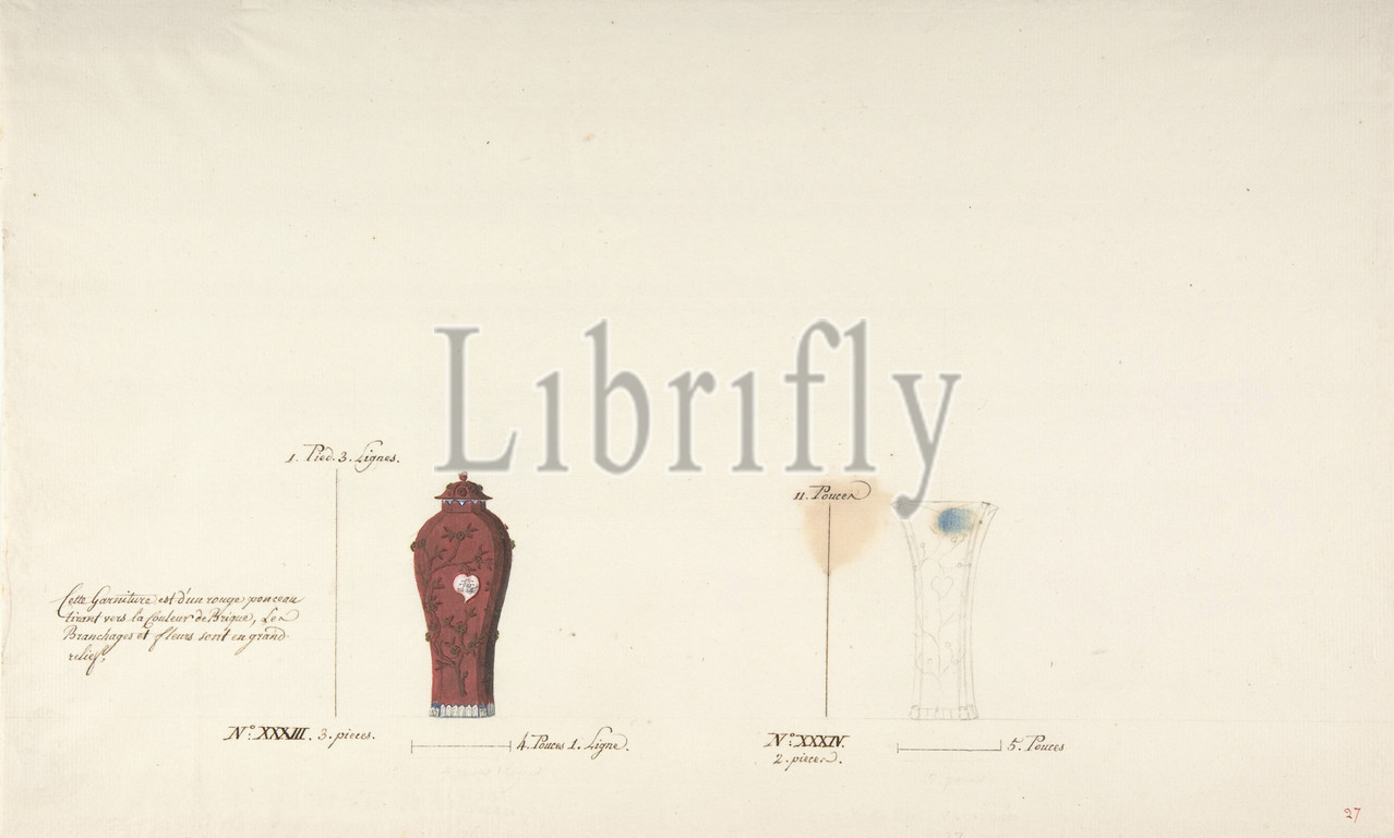 Design for Two Vases, ca. 1770–85, Pen and brown ink, watercolor, and black chalk, 14 3/4 x 8 15/16 in. (37.5 x 22.7 cm), Drawings, Anonymous, French, 18th century
