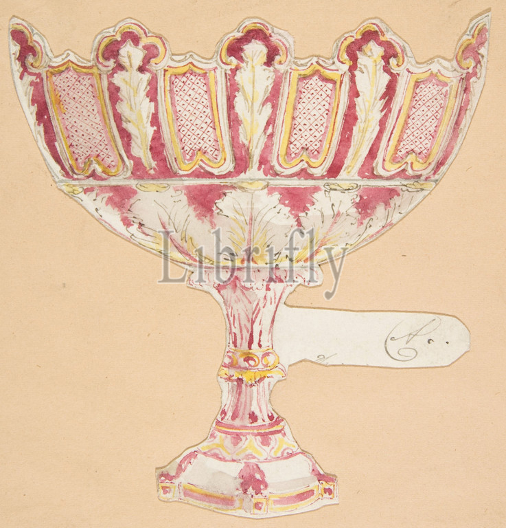 Design for a vessel, 19th century, Pen and ink and watercolor, sheet (irregular): 4 1/8 x 3 3/4 in. (10.5 x 9.5 cm), Drawings, Anonymous, French, 19th century