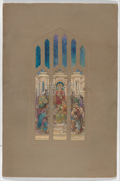 Design for window, late 19th–early 20th century, Made in New York, United States, American, Black ink, graphite, watercolor, and gouache on paper in original window mat with tracery, Overall: 24 3/8 x 16 1/8 in. (61.9 x 41 cm), Drawings, Possibly Tiffany Glass Company (1885–92), Possibly Tiffany Glass and Decorating Company (American, 1892–1902), Possibly Tiffany Studios (1902–32)