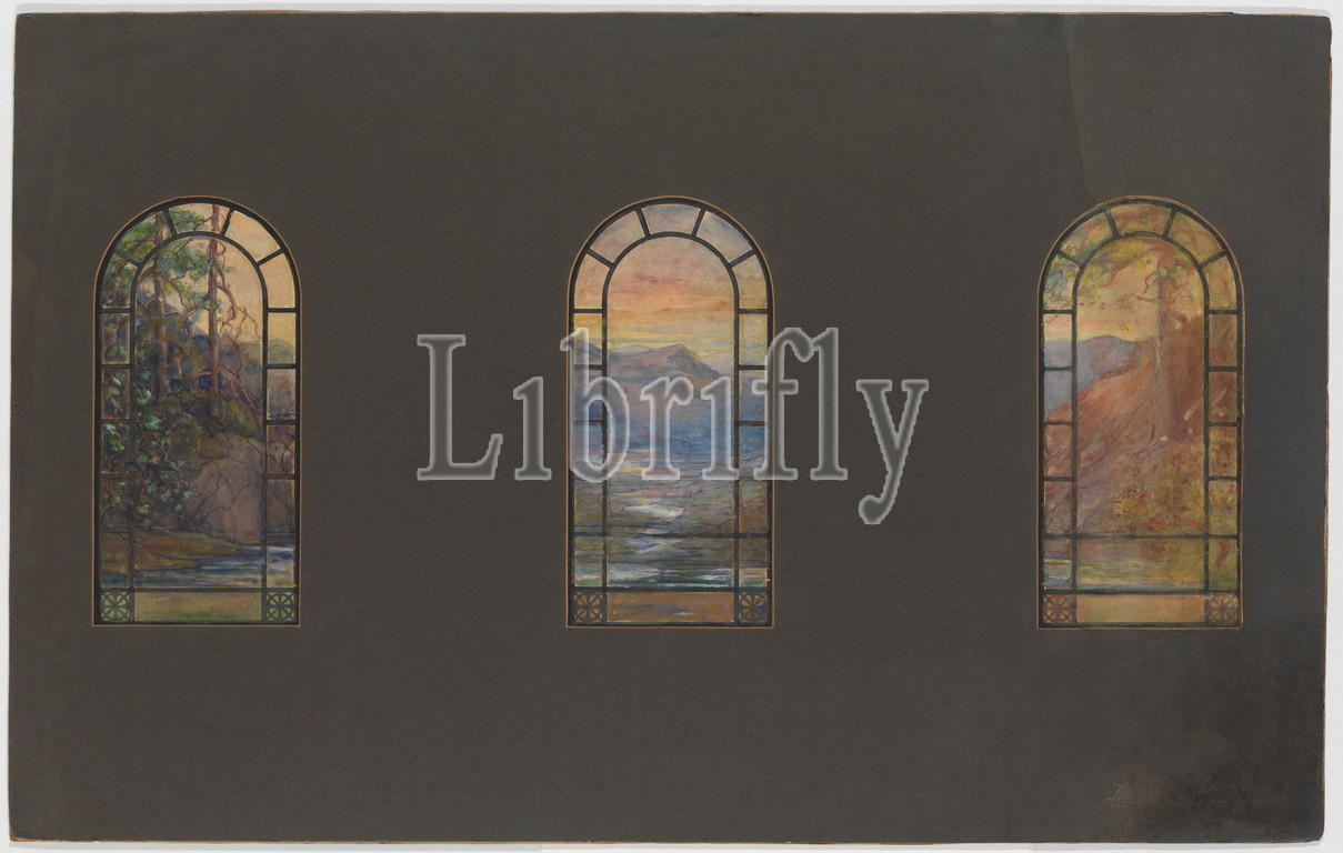Design, window, late 19th–early 20th century, New York, United States, American, Watercolor, paper mounted, board, original mount, 18 7/16, 27 7/8, 46.8, 70.8 cm, Drawings, possibly, Tiffany Glass Company, 1885–92, and Decorating, 1892–1902, Studios, 1902–32