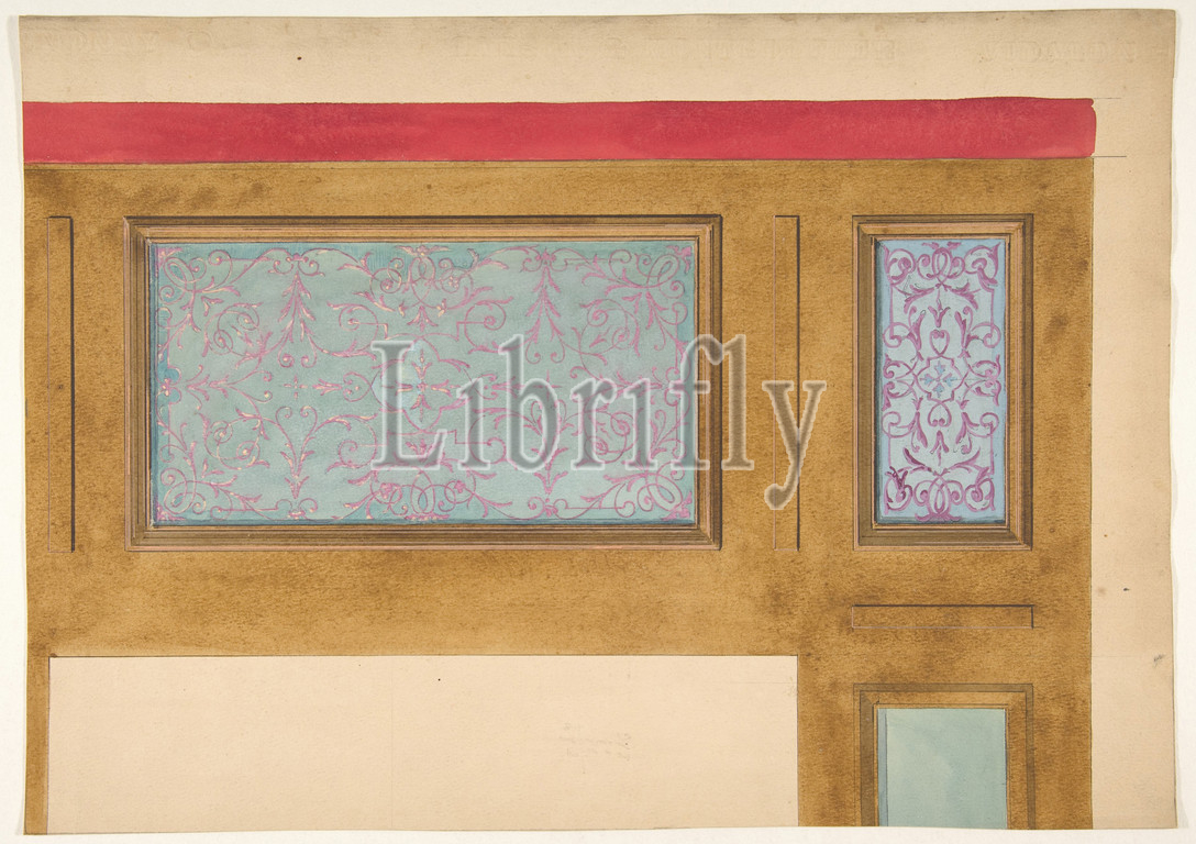 Design, woodwork, painted panels, 19th century, graphite, pen, ink, watercolor, wove paper, Drawings, Jules-Edmond-Charles Lachaise, French, died, 1897, Eugène-Pierre Gourdet, born Paris, 1820