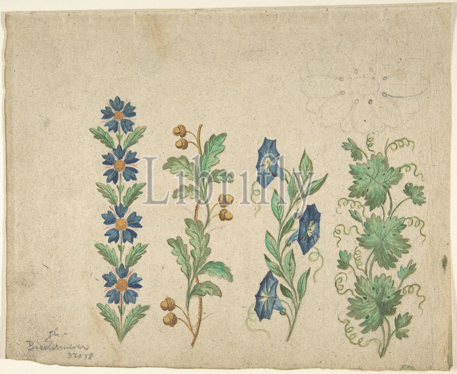 Designs for Embroidery, 19th century, Watercolor over traces of black chalk., 7 3/4 x 9 5/8 in. (19.7 x 24.5 cm), Drawings, Anonymous, German, 19th century