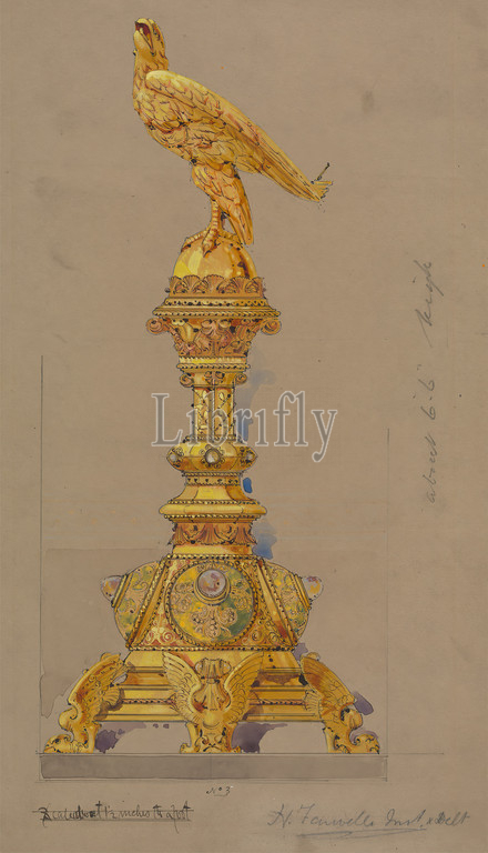 Designs executed, Jones, Willis, metal, wood-workers, church furniture manufacturers, Birmingham, London, George Edmund Street, 1824–1881, British, Black ink, graphite, watercolor, gouache, thick, smooth, brown wove paper, Sheet, architectural subject