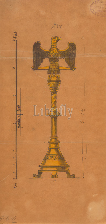 Designs executed, Jones, Willis, metal, wood-workers, church furniture manufacturers, Birmingham, London, George Edmund Street, 1824–1881, British, Black ink, watercolor, gouache, medium, smooth, brown wove paper, two fold marks, Sheet, architectural subject