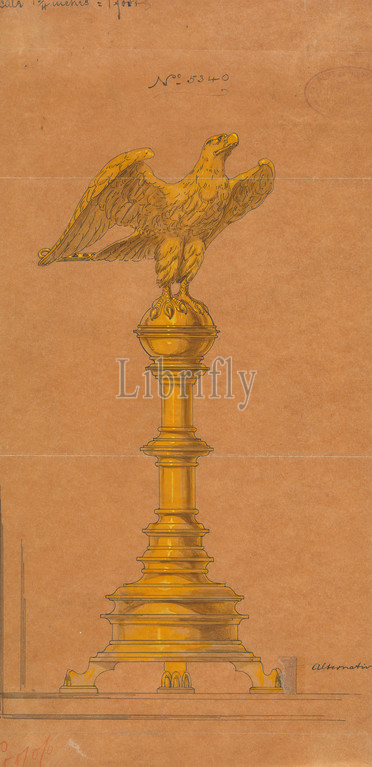 Designs executed for Jones and Willis, metal and wood-workers and church furniture manufacturers of Birmingham and London, George Edmund Street, 1824–1881, British, undated, Pen, black and red ink and graphite with watercolor and gouache, verso: white gouache on medium, smooth, brown wove paper with three fold marks, Sheet: 13 3/8 × 6 1/2 inches (34 × 16.5 cm), architectural subject