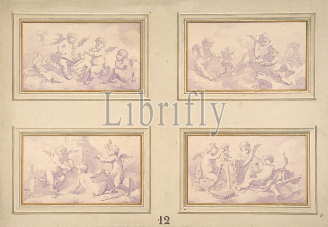Designs featuring, allegories, arts, second half 19th century, Graphite, watercolor, Overall, 14 1/8 x 14 3/4, 35.9 37.5 cm, Drawings, Jules-Edmond-Charles Lachaise, French, died, 1897, Eugène-Pierre Gourdet, born Paris, 1820