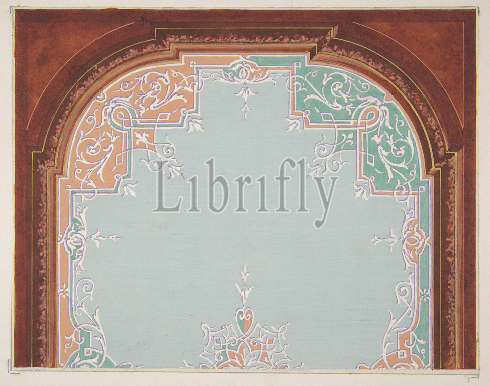 Designs, painted ceiling, filagree borders, 1830–97, watercolor, gouache, gold paint, graphite, wove paper, mounted, Overall, 10 3/8 x 14 3/4, 26.3 37.5 cm, Drawings, Jules-Edmond-Charles Lachaise, French, died, 1897, Eugène-Pierre Gourdet, born Paris, 1820