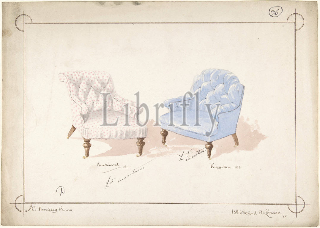 Designs for Two Chairs, 1841–84, Watercolor over graphite, sheet: 10 1/16 x 14 1/4 in. (25.6 x 36.2 cm), Charles Hindley and Sons (British, London 1841–1917 London)