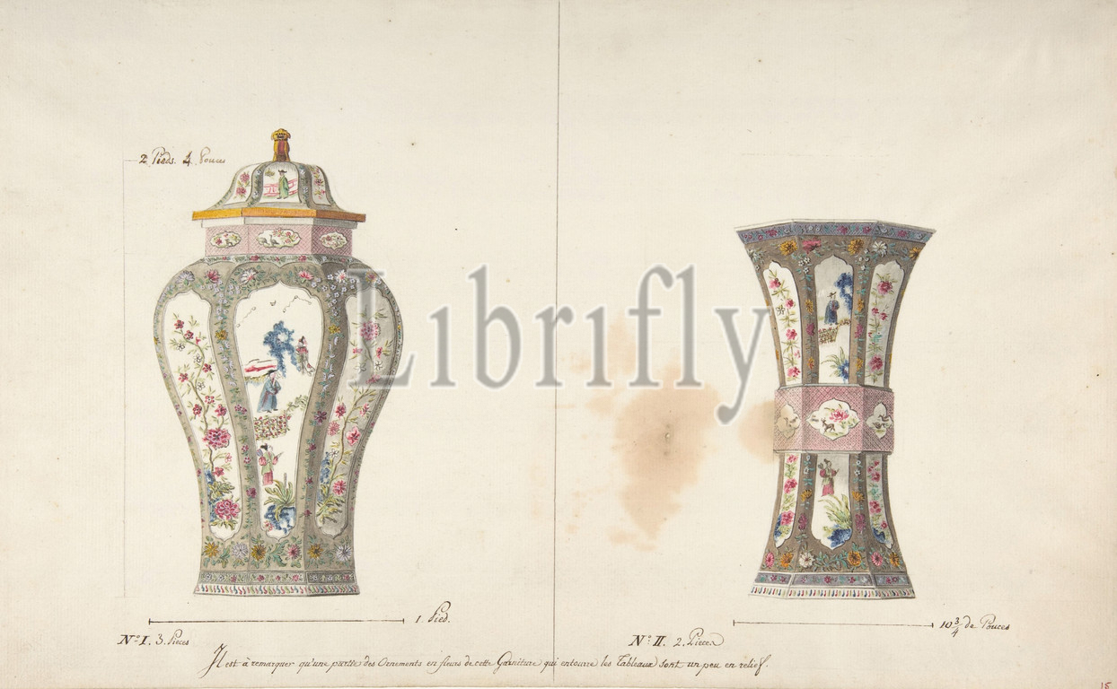Designs for Two Porcelain Vases, ca. 1770–85, Pen and brown ink, watercolor, and graphite, 14 7/8 x 9 3/16 in. (37.8 x 23.3 cm), Drawings, Anonymous, French, 18th century