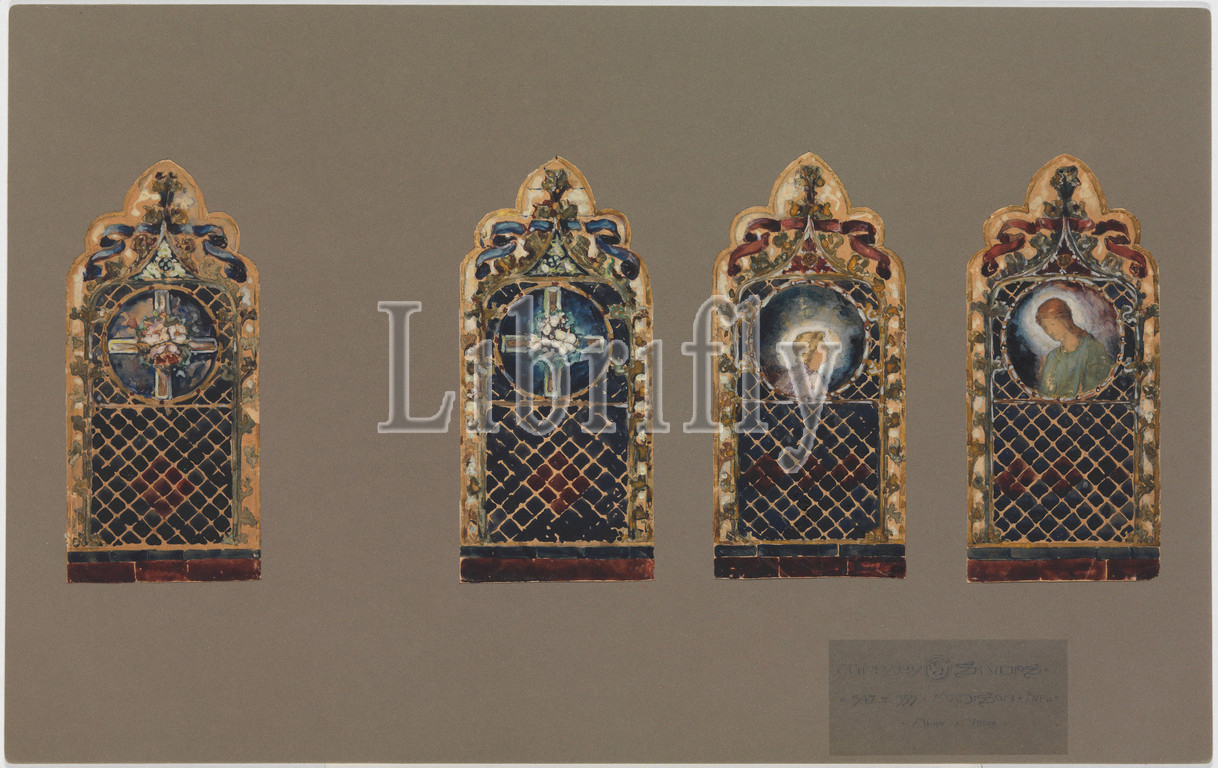 Designs for windows, late 19th–early 20th century, Made in New York, United States, American, Watercolor on paper mounted on board, Overall: 12 3/4 x 19 1/4 in. (32.4 x 48.9 cm), Drawings, Tiffany Studios (1902–32)