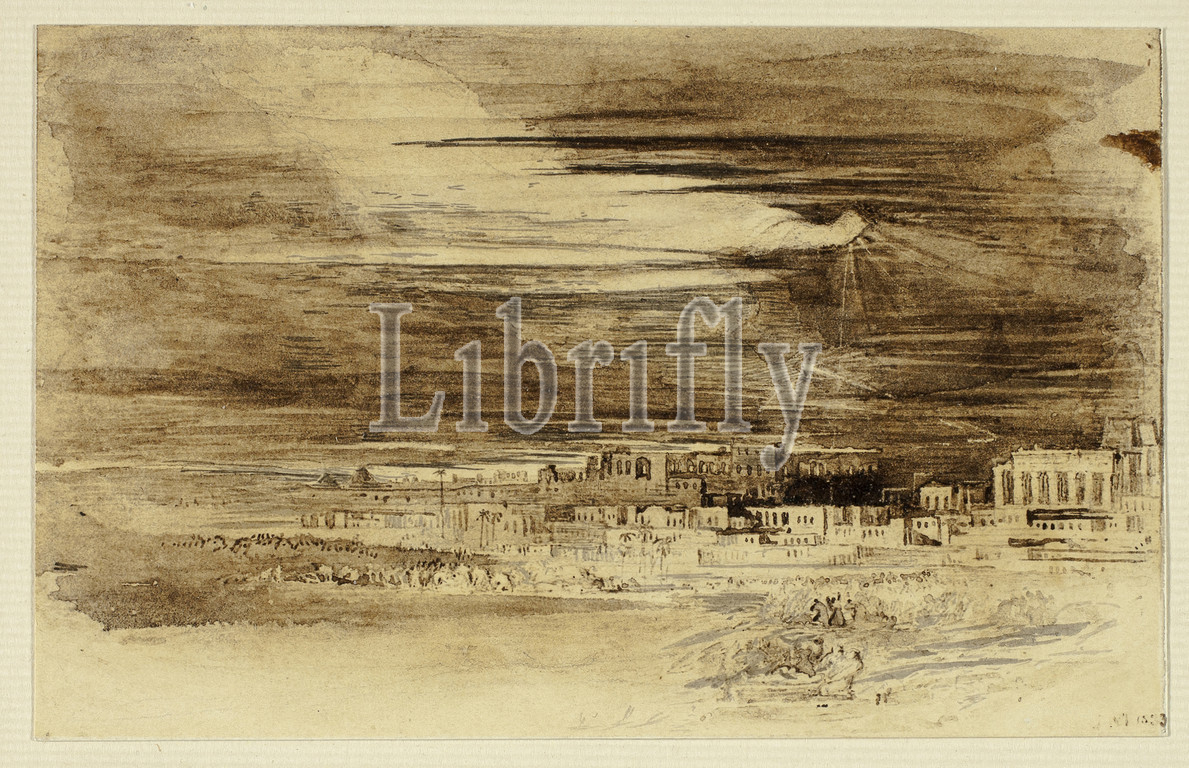 The Destroying Angel, 1833, John Martin, English, 1789-1854, England, Brush and brown and black watercolor, with touches of scratching, on cream wove paper, 85 × 136 mm