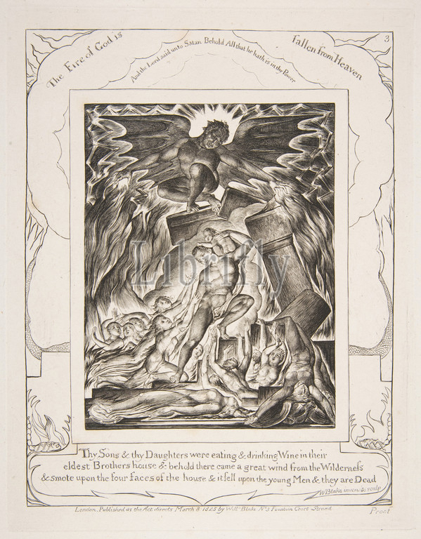Destruction, Job, Sons, Illustrations, Book, 1825–26, Engraving, plate, 8 1/2 x 6 5/8, 21.6 16.8 cm, Prints, William Blake, British, London, 1757–1827