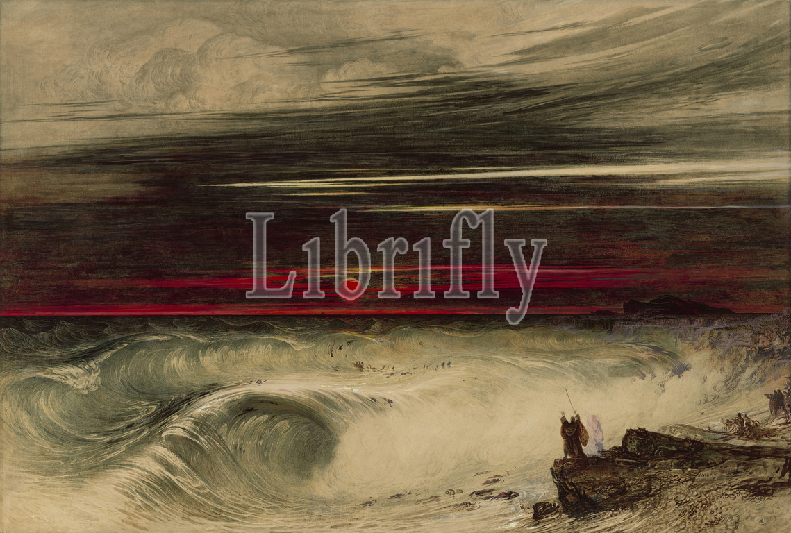 The Destruction of Pharaoh's Host, John Martin (English, 1789 - 1854), United Kingdom, 1836, Watercolor and oil paint with brown ink and scraping out on paper, 58.4 × 85.7 cm (23 × 33 3/4 in.)