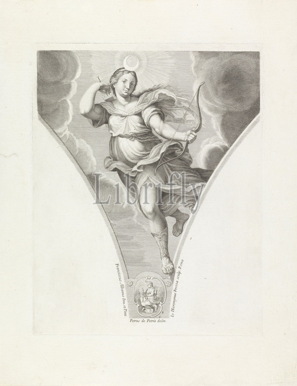 Diana Paintings, Francesco Albani, series title, goddess Diana, bow, arrow, Decoration, pendentive, Story, Diana, Artemis, Giovanni Girolamo Frezza, mentioned, object, 1704, paper, engraving