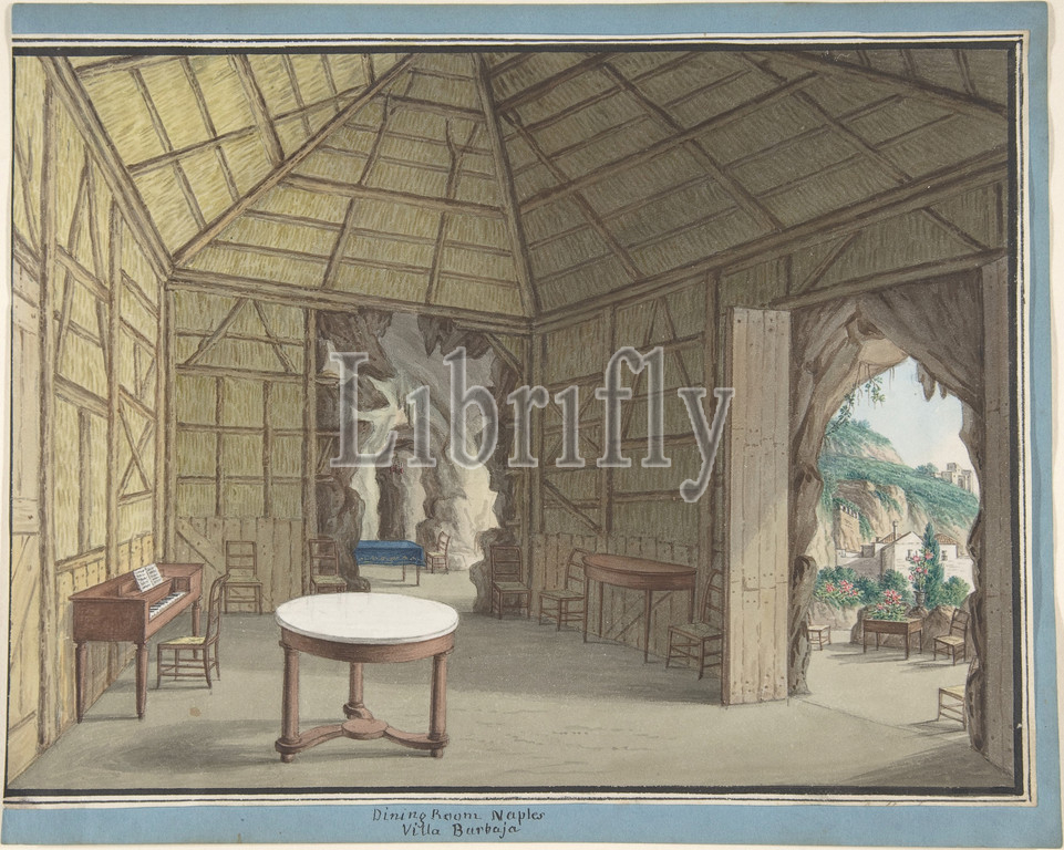 Dining Room, Villa Barbaja, Naples, 1800–1870, Watercolor, sheet, 7 5/8 x 10 1/8, 19.4 25.7 cm, Drawings, Attributed to Anonymous, British, 19th century