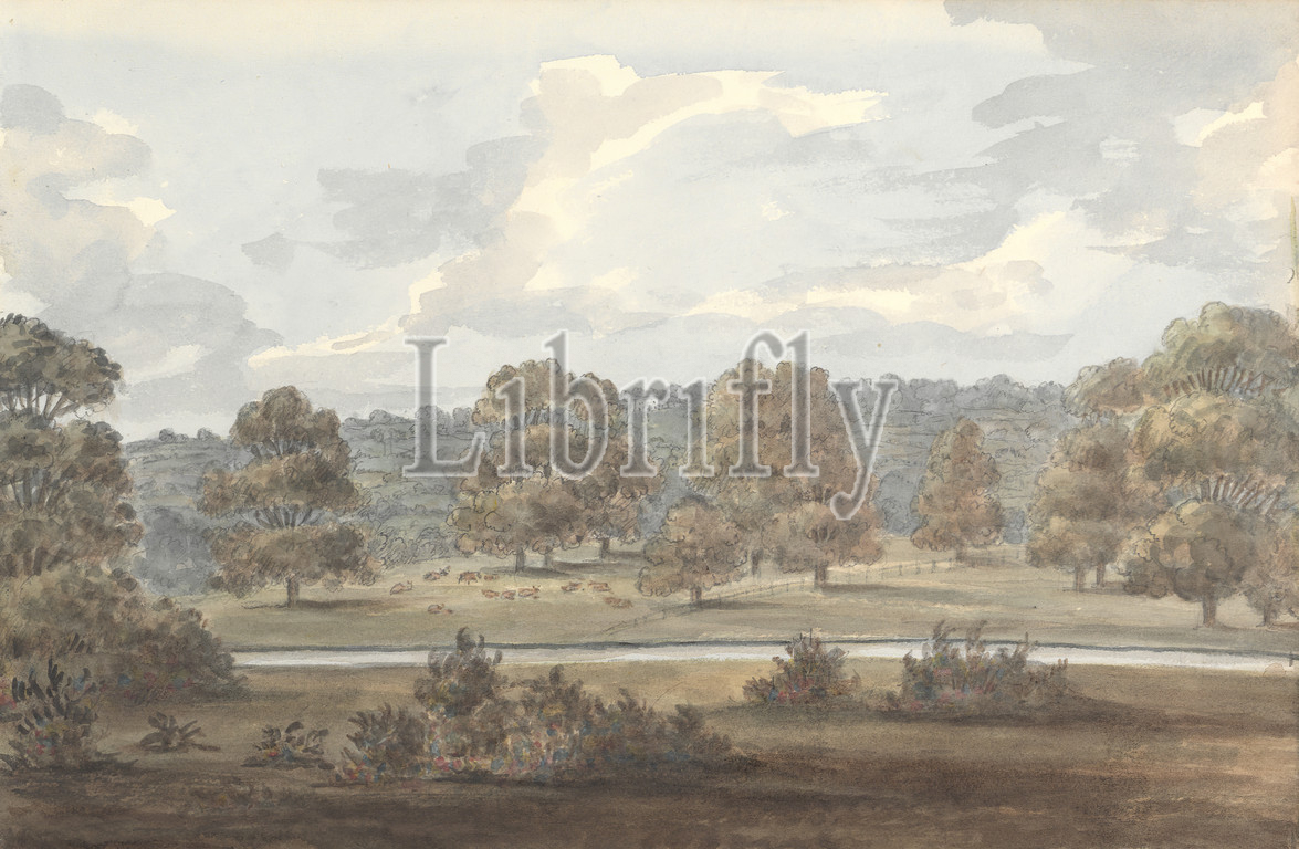 From Dining Room Window, Wanstead Grove, Anne Rushout, ca. 1768–1849, British, 1824 to 1832, Watercolor and graphite on moderately thick, slightly textured, cream wove paper, Sheet: 7 × 10 1/2 inches (17.8 × 26.7 cm)