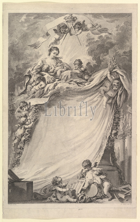Diploma of Free Masons of Bordeaux, 1765–66, Etching and engraving, Sheet: 16 1/8 x 11 1/8 in. (41 x 28.3 cm), Pierre Philippe Choffard (French, Paris 1730–1809 Paris), After François Boucher (French, Paris 1703–1770 Paris)