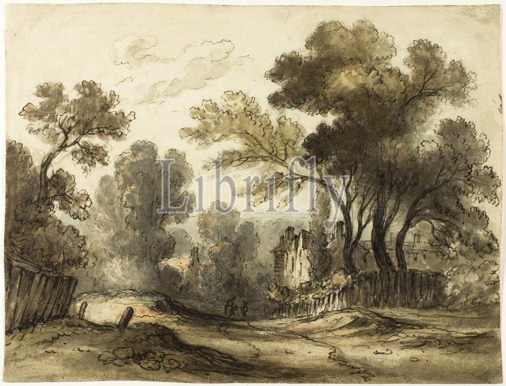 Dirt Road Landscape, recto, Landscape, verso, n.d., James Drunken Robertson, English, active 1815-1836, David Cox, elder, 1783-1859, England, Pen, brown ink, watercolor, graphite, off-white wove paper, 240