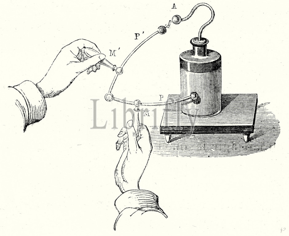 discharging, leyden jar, leyden, jar, science, 18th century, electric, device, invention, 19th century engraving, vintage, old print, 19th century, victorian, retro, quint, lox, engraving