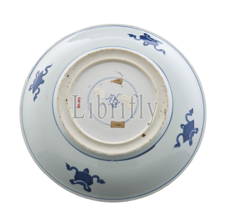 dish, plum, ice design, Kangxi, Qing dynasty, period, 1662-1722, porcelain, glaze, blue pigment, 2-1/8 x 13-5/8, diam, Asian Art