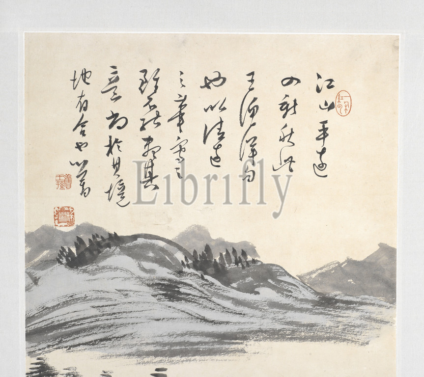 Distance, Rivers, Mountains, Pu Ru, Chinese, 1896-1963, Modern {Chinese period}, 1943, ink, color, paper, 33 x 12-5/8, image, 67-1/2 x 18-7/8 x 1-1/4, overall, Signed, Xinyu Seal, Yi duo hong yun Seal, Jiu wang sun Seal, Pu Ru Colophon, Zhuo Dingmou, 1886-1977, dated 1943, Asian Art
