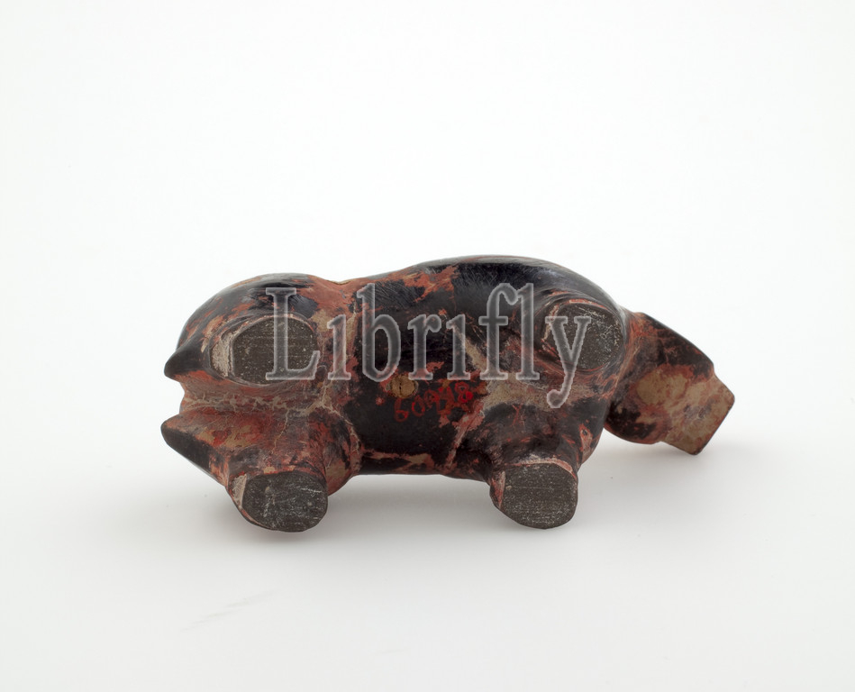 dog, Modern {Chinese period}, 1912-1981, stoneware, red, black painted decoration, L, 3-3/8, Asian Art