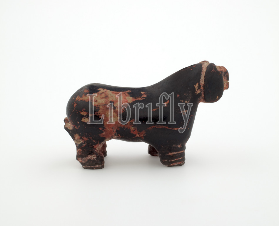 dog, Modern {Chinese period}, 1912-1981, stoneware, red, black painted decoration, L, 3-3/8, Asian Art