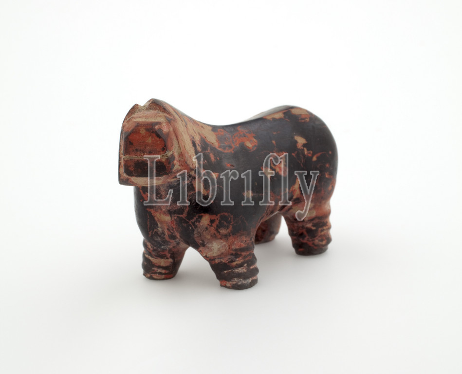 dog, Modern {Chinese period}, 1912-1981, stoneware, red, black painted decoration, L, 3-3/8, Asian Art