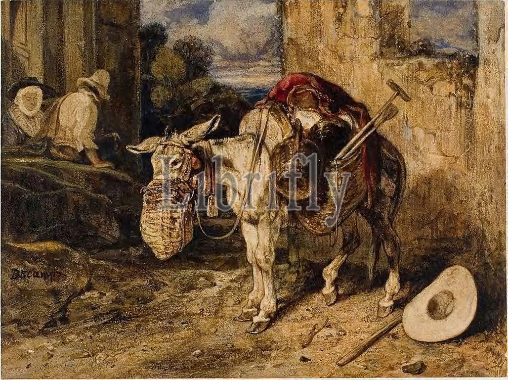 Donkey, 1833, Alexandre Gabriel Decamps, French, 1803-1860, France, Watercolor, touches, gouache, heightened, gum varnish, traces, graphite, tan wove paper, 220
