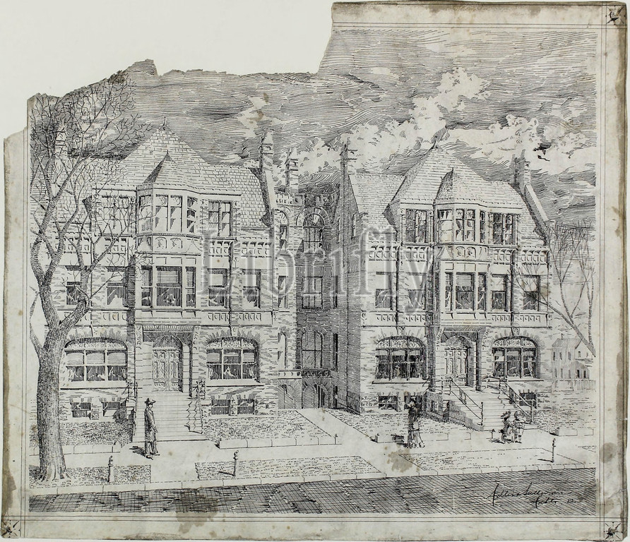 Double House, Mr. Straus, Perspective View, 1883, Adler & Sullivan, Architects, American, fl. 1883–1895, Louis H. Sullivan, 1856–1924, Dankmar Adler, 1844–1900, United States, Ink, drawing paper, 47.3