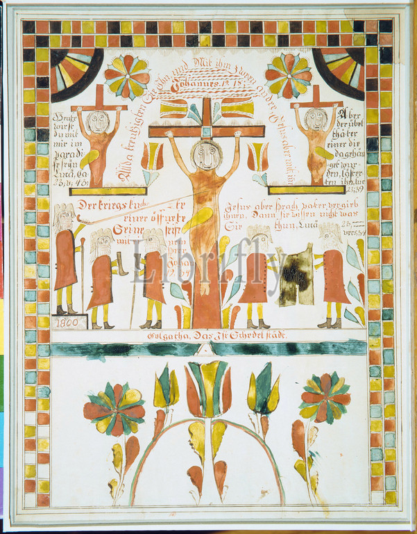 Drawing, Crucifixion, 1800, Pennsylvania, United States, American, Watercolor, gum arabic, iron gall ink, off-white woven paper, 13 1/2 x 10 1/2, 34.3 26.7 cm, Drawings