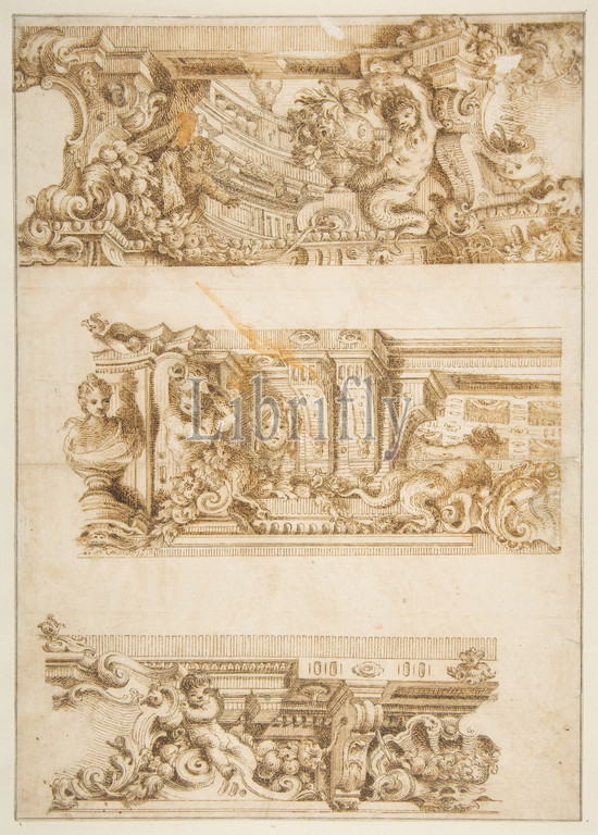 Drawing for Engraving in Raccolta di Vari Schizzi, Venice, 1747, After Angelo Rosis., ca. 1747, Pen and light and dark brown ink, over faint traces of graphite underdrawing; framing outline in graphite, sheet: 13 1/2 x 9 9/16 in. (34.3 x 24.3 cm), Antonio Maria Visentini (Italian, Venice 1688–1782 Venice)