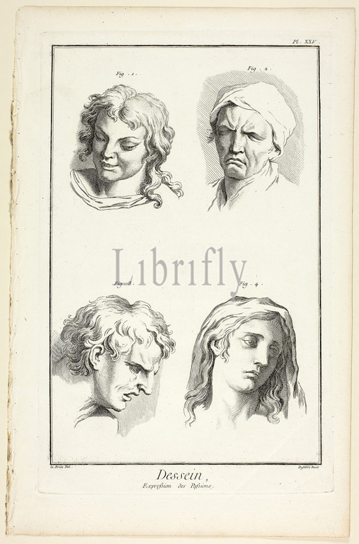 Drawing, Expressions, Emotion, Laughter, Weeping, Compassion, Sadness, Encyclopédie, 1762/77, A. J. Defehrt, French, active 18th century, Charles le Brun, active 17th century-1765, published, André le Breton, 1708-1779, Michel-Antoine David, c. 1707-1769, Laurent Durand, 1712-1763, Antoine-Claude Briasson, 1700-1775, France, Etching, engraving, cream laid paper, 317