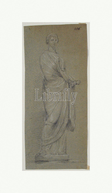 Drawing, Female Statue, 18th century, Black chalk, heightened, white, blue paper, sheet, 10 5/8 x 4 5/8, 27 11.7 cm, Drawings, Anonymous, French