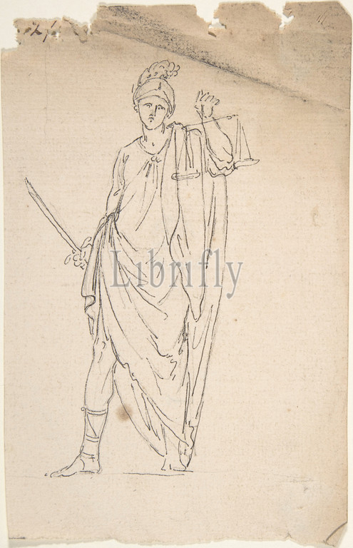 Drawing, Female Statue, Sword, Scale, 18th century, Graphite, pen, black ink, 6 9/16 x 4 3/16, 16.7 10.6 cm, Drawings, Anonymous, French