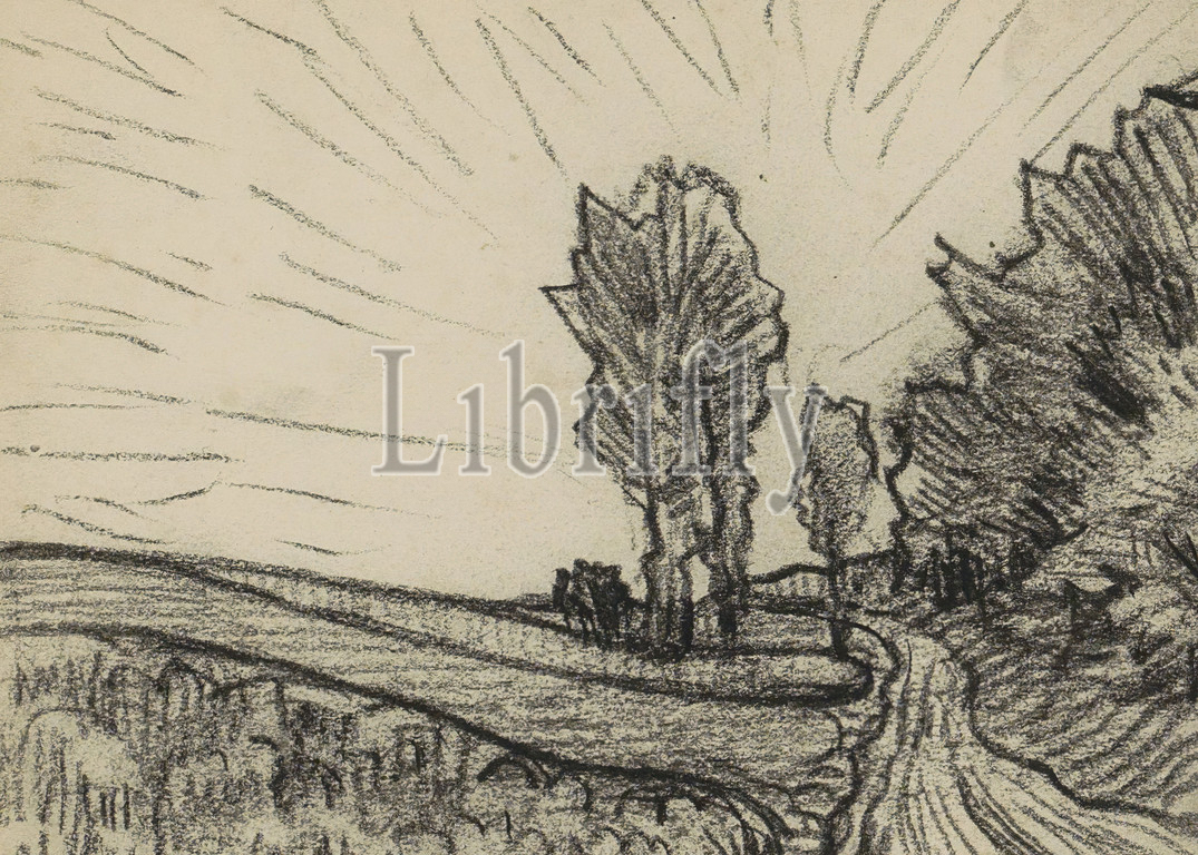 Drawing, frame, Sheet 1 verso, sketchbook, 23 sheets, Path, landscape, trees, Hermannus Adrianus van Oosterzee, 1893
