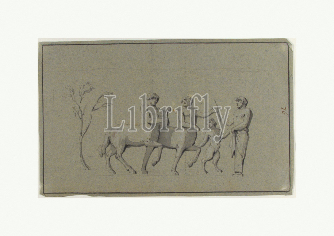 Drawing, Group, Centaurs, 18th century, Black chalk, brush, gray wash, blue paper, sheet, 6 5/16 x 10 3/8, 16 26.3 cm, Drawings, Anonymous, French