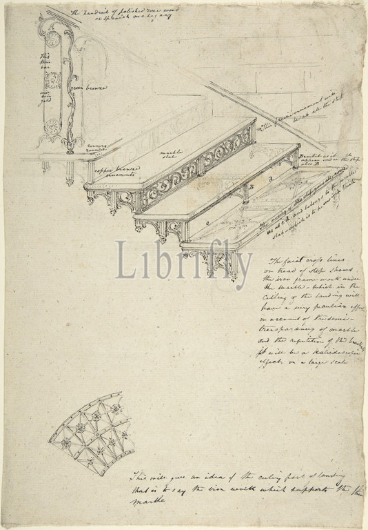 Drawing, iron stairway, marble treads, 19th century, Ink, graphite, sheet, 10 5/8 x 7 1/2, 27 19.1 cm, Anonymous, British