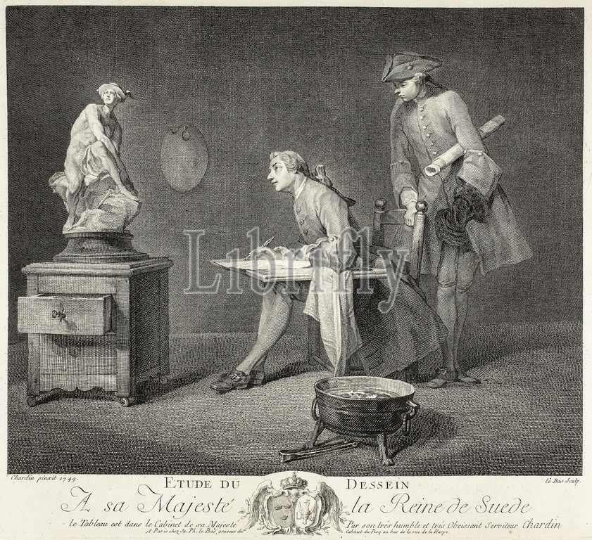 The Drawing Lesson, 1749, Jacques Philippe Le Bas (French, 1707-1783), after Jean Baptiste Siméon Chardin (French, 1699-1779), France, Engraving in black on cream laid paper, 251 × 309 mm (image), 294 × 329 mm (plate), 455 × 624 mm (sheet)