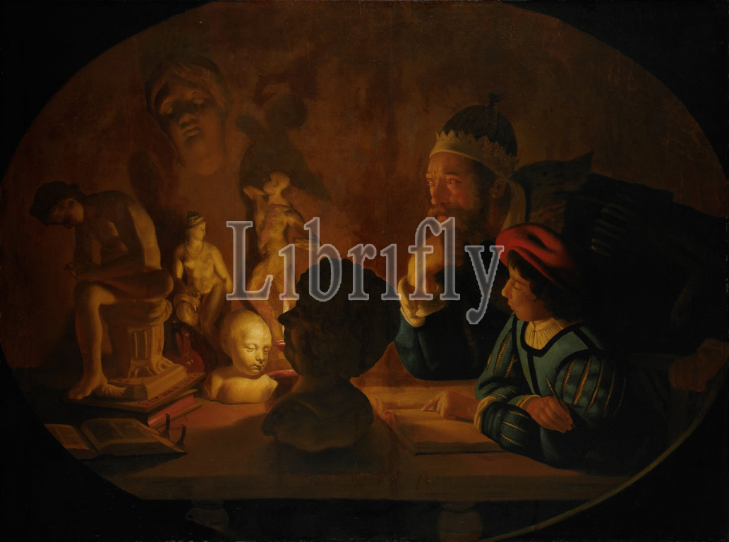 Drawing Lesson, drawing lesson, old man teaches, boy, draw plaster models, candlelight sculptures, Jan ter Borch, 1634, canvas, oil paint, paint, support