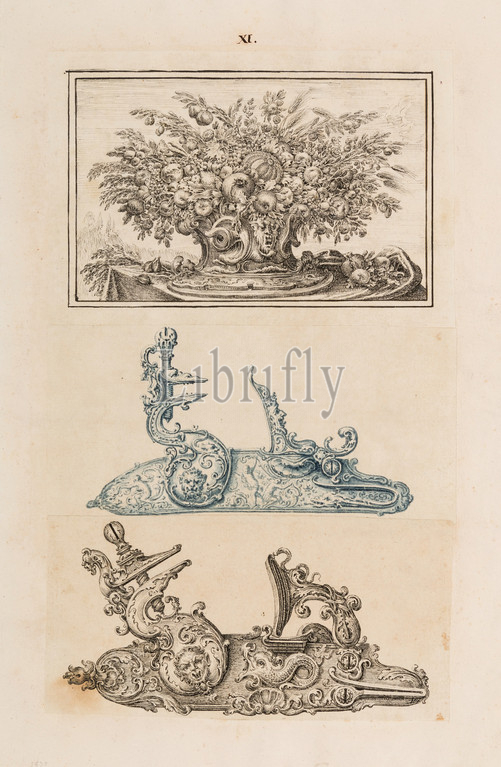 Drawing, Ornament Scrapbook, Snaphaunce Gun Lock, 18th century, Italian, Pen, black ink, paper, 7 7/16 x 3 5/8, 18.8 9.2 cm, Works, Paper-Drawings