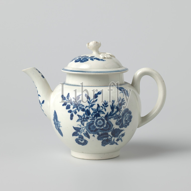 Drawing pot, painted flowers, insects, porcelain, painted, blue flowers, white ground, Marked, letter L, Langley, Langley Mill, 1790, 1800, material, w 16 0