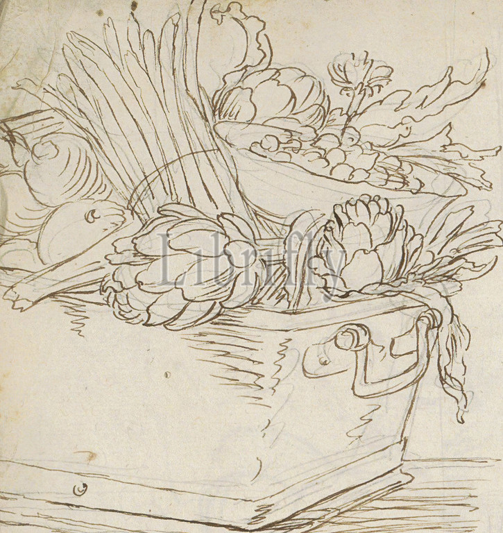 Drawing, section, grid, studies, scales, Sheet 12 verso, sketchbook, 15 sheets, Vegetable basket, Paul de Vos, 1605 - 1678