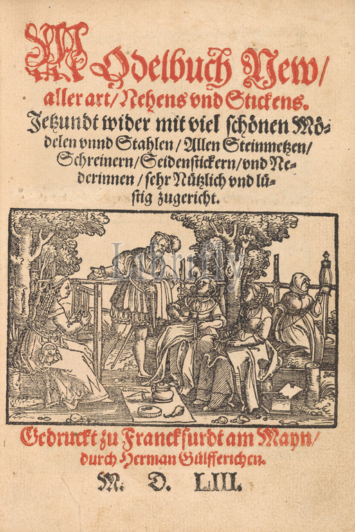 Drawings Prints, Books, Prints, Ornament, &, Architecture, Title, page, Modelbuch, new, aller Art, Nehens und Stickens, page 1r, Publisher, Binder, Hermann Gülfferich, Riviere Sons, 1542–1554, London, Frankfurt am Main, Gülfferich, Hermann, German, British, 1542, 1840, 1554, 1939, 1553