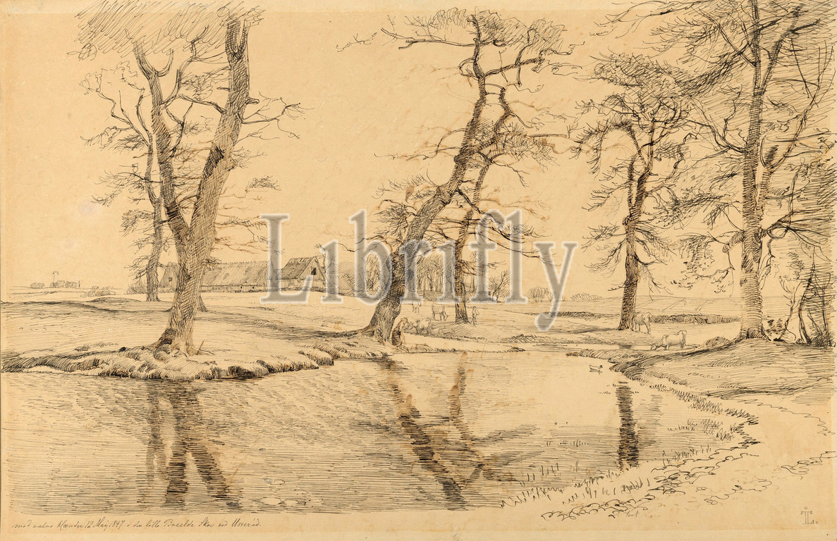 Drawings and Prints, Drawing, A Brook near a Farm in Usserød with Cows and Two Figures, Artist, Johan Thomas Lundbye, Danish, Kalundborg 1818–1848 Bedsted, Lundbye, Johan Thomas, Danish, 1818, 1848, 1847, 1847
