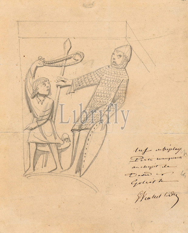 Drawings Prints, Drawing, David Goliath, Capital Vézelay Abbey, Artist, Eugène-Emmanuel Viollet-le-Duc, French, Paris 1814–1879 Lausanne, Viollet-le-Duc, Eugène-Emmanuel, 1814, 1879, ca. 1840, 1835
