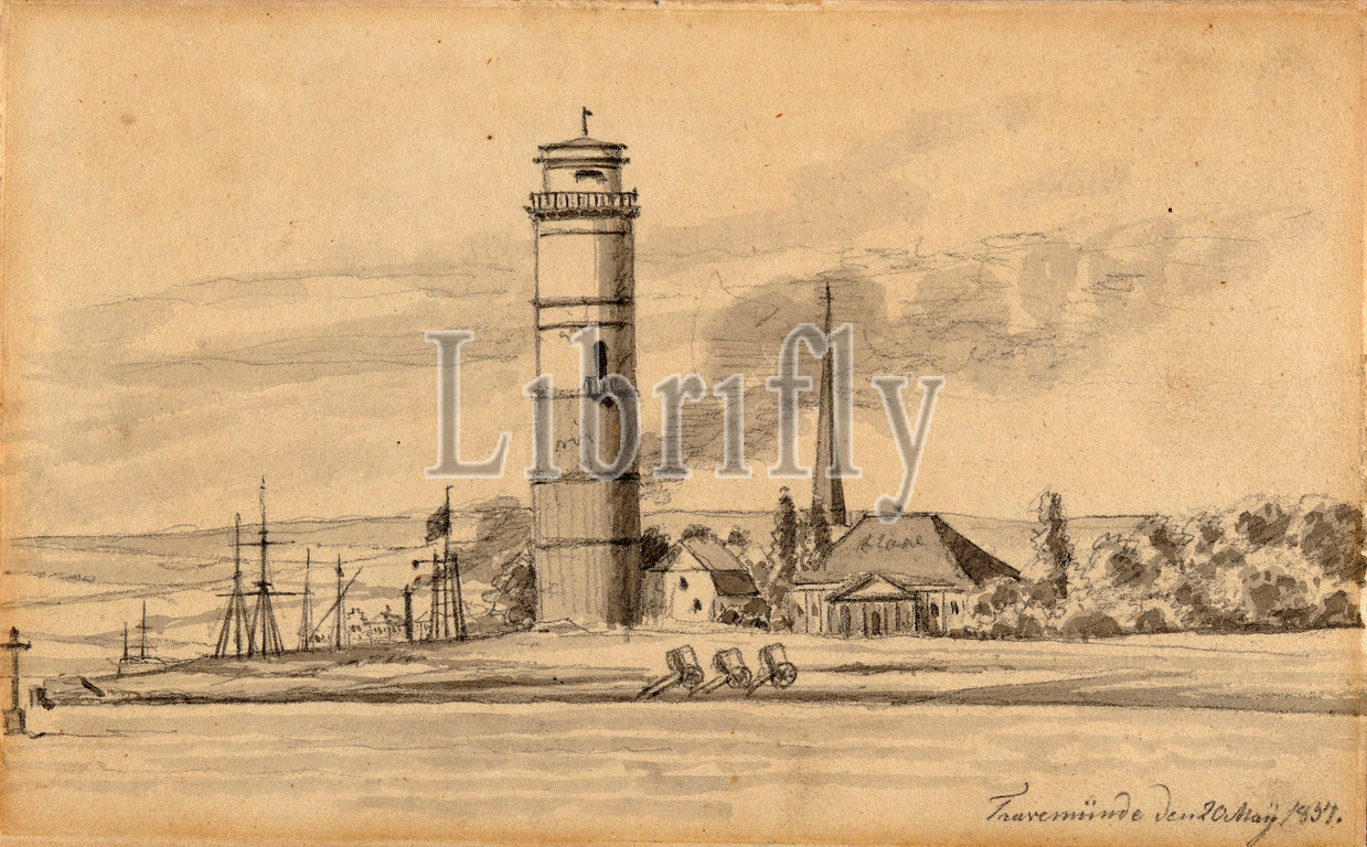 Drawings and Prints, Drawing, The Lighthouse of Travemünde Seen from the South, Artist, Martinus Rørbye, Danish, Drammen 1803–1848 Copenhagen, Rørbye, Martinus, Danish, 1803, 1848, 1834, 1834