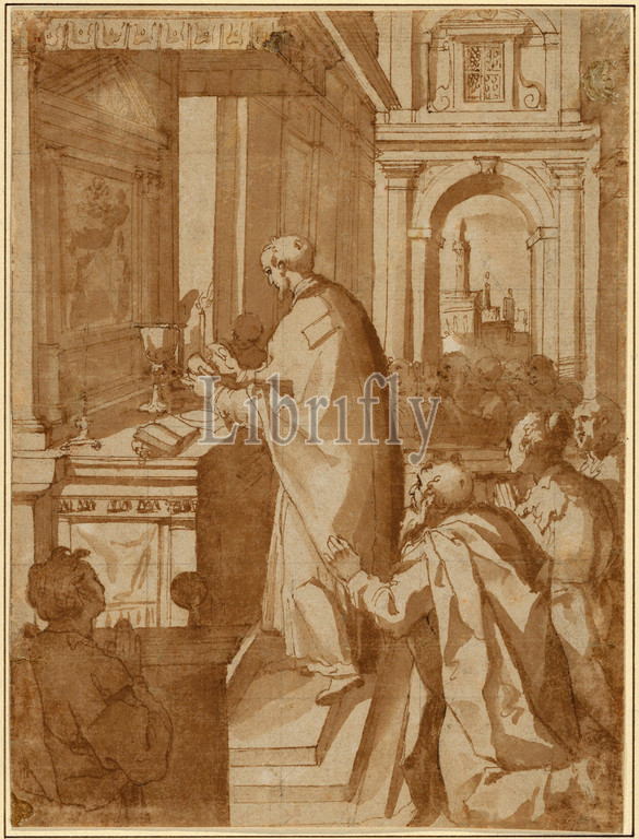 Drawings Prints, Drawing, Priest, Celebrating, Mass, Artist, Giorgio Picchi, Younger, Italian, Casteldurante, Urbania, ca. 1555–1605, Picchi, Younger, 1555, 1605, ca. 1600–5, 1595